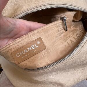 Chanel CC Bowler Bag Perforated Leather in size medium, cream color with silver hardware.