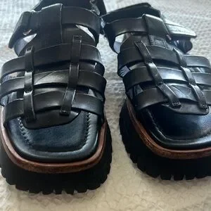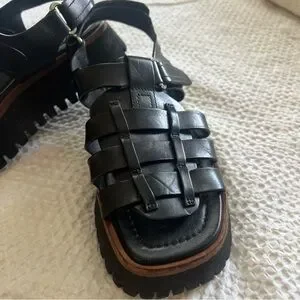 Experience the perfect blend of style and comfort with Labucq's black chunky platform sandals. Designer made in Italy. euro size 38 us size 7.5-8. in great used condition. super comfy sandals