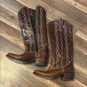 Liberty Black leather boots with the cutest western stitching. Excellent used condition. I loved these boots, but can’t get them to zip over my calves.