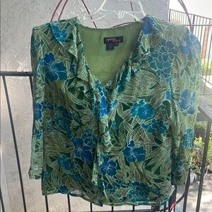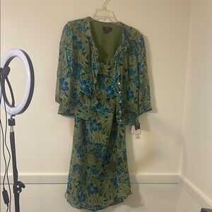 Green and Blue Wrap Midi 2 piece set skirt and blouse Cocktail