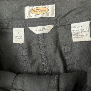 Talbots Irish Linen Pants Woman Size 4 Petite Wide Leg Solid Black EUC *J13