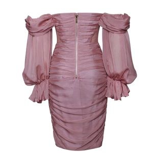 The Callie Blush: Ruched & Ready Mauve Pink Formal Cocktail Strapless Dress has the most beautiful statement sleeves and Sheer side panels. The soft blush-colored satin mini features built-in-cups and a fully ruched fabric that adds texture for a unique silhouette. With an exposed back zipper and body contouring skirt, this gorgeous number can be paired with a classic nude or Transparent pump.