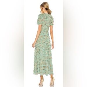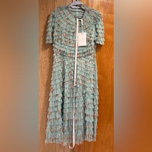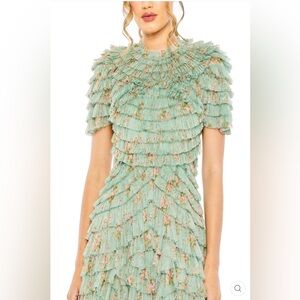 Mac Duggal Experience the ethereal beauty of the Mac Duggal 8014, a tea-length evening dress crafted to elevate your elegance. Made from delicate chiffon, its tiered ruffles flow gracefully, creating movement that captivates every gaze. The high neckline and short sleeves sculpt a refined silhouette, while the discreet zipper back offers a flawless fit tailored just for you. This A-line masterpiece merges timeless sophistication with romantic charm, inviting you to step confidently into any memorable occasion with effortless grace. Embrace the exquisite craftsmanship and let this dress be the centerpiece of your most unforgettable evenings.