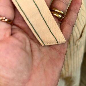 Fun casual cream maxi dress with green pinstripes. Halter neckline. Perfect for casual or formal occasions. This denim fabric is gorg! With a length of 42" from waistline she's Tall Girl friendly ๐๐๐๐