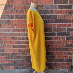Trina Turk Kaanapali Crepe Sheath Dress Yellow Size Medium Chic New, see pictures there are 3 stains on the dress- bottom left, back left side all pictured