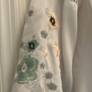 This relaxed blouse from Sami & Jo features a soft white color and elegant embellishments, perfect for adding a touch of sophistication to any outfit. The 3/4 sleeves offer a stylish and comfortable fit, making it an ideal choice for both casual and formal occasions. (22” pit to pit/27 1/2” length)