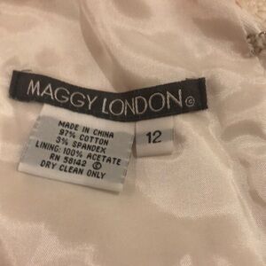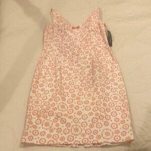 This elegant sundress by Maggy London features a sleeveless design with a flattering V-neckline. The dress showcases a beautiful pink pattern on a crisp white background, creating a fresh and summery look. Ideal for wedding guest occasions, it combines a fitted bodice with a slightly flared mini skirt for a chic silhouette.