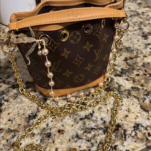 Chic Coach leather bag in cream. Features a silver buckle. Adds elegance to any outfit.scarf included