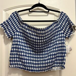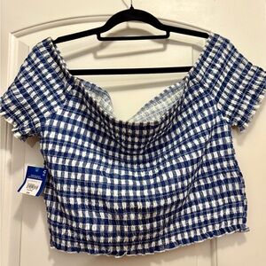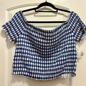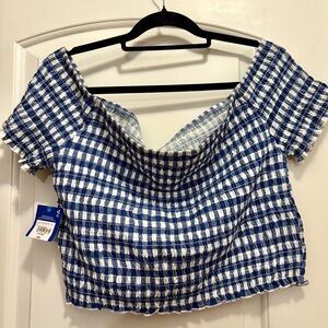 Arizona Jean Company Blue and White Plaid Off-Shoulder Top