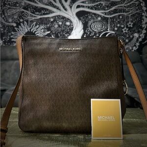 Michael Kors Brown Messenger Bag with Signature MK Monogram