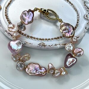 Handmade Freshwater Keshi Edison Heart ❤️ Clover 🍀🦄 Baroque Pearl Bracelet
