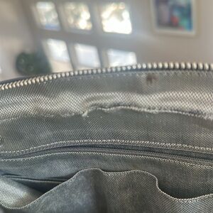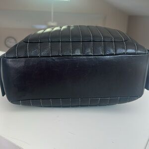 PRICE IS FIRM CHANEL vintage Karl Lagerfield mademoiselle Ligne black, vertical quilted lambskin camera bag, silver chain, silver hardware, Chanel logo hanging cc. outside of the bag is in beautiful condition very little call out on the outside looking very close on the outside pocket some wear lightly it is very hard to see, but I am noting it. . There’s no rips or tears. This is a vintage bag from 2006 inside has a some marks and some fabric separation that looks like there had been some repair as well. The outside has two slide pockets. The inside has different compartments and two zip pockets maybe an ink or makeup stain in a couple of places inside please see all the pictures this bag is still gorgeous. Please see all the pictures the chain has a few places on it that the silver shows some discoloration please see all pictures. The bag is vintage, but the bag is still in beautiful condition already authenticated, but it will be authenticated again from Poshmark calfskin lambskin leather. No card included but has a dust bag. This bag measures 9 inches tall by 11 inches long by when full 5.6 inches wide. The chain can slide through and be shoulder or double up, so soft very beautiful. Also willing to trade for a gold color Chanel bag.