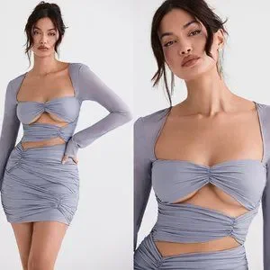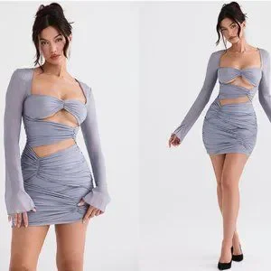 House of CB ‘Camille’ Dove Grey Real Silk Mini Dress NWOT