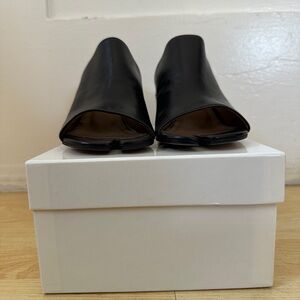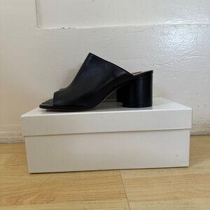 Experience the perfect blend of style and comfort with these Maison Martin Margiela black sandals. Featuring a sleek, minimalist design with a smooth leather upper and a medium block heel, these sandals offer a contemporary look. The open toe adds an elegant touch, making them a sophisticated choice for any occasion.