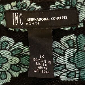 INC International Concepts Mesh Black & Blue Ruffled sleeve on/off shoulder 1X
