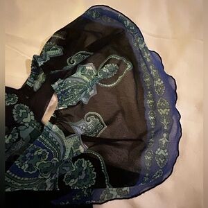 INC International Concepts Mesh Black & Blue Ruffled Shirt top blouse