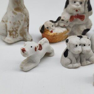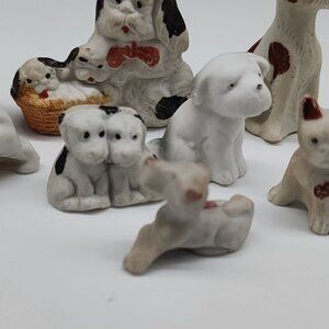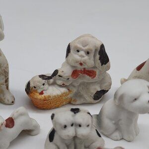 Vintage Antique Bisque Dog Figurines Set Of 10 - Miniature Collectibles Terrier