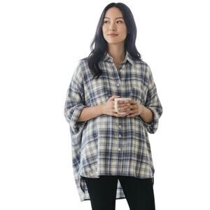 🧵 Patchwork colorblocking in navy, lavender, and sage green plaid gives this piece a unique charm.