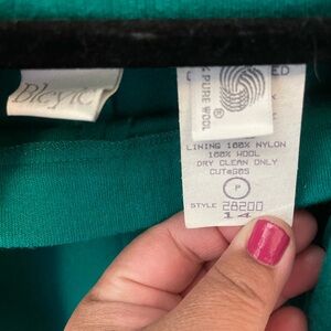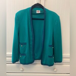 Bleyle Women’s Teal Green with Blue trim Blazer &Pants Vintage Wool Sz 14 Petite