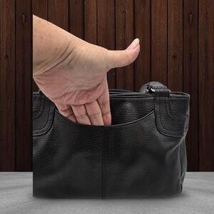 Vintage Covington Black Leather Shoulder Bag Scallop Front Pocket