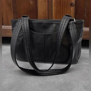 Elegant black leather tote bag. Perfect for everyday use.