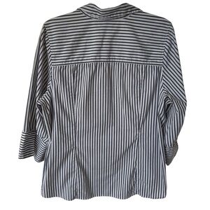 Lane Bryant Blue and White Cuffed Quarter Sleeves Hidden Button-up Shirt