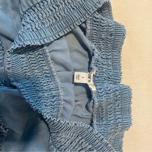 This casual mini skirt by Bar III features a playful bubble style with a smocked waistband for a comfortable fit. The blue skirt is designed with a tiered structure, adding a touch of flair to your everyday look. Perfect for casual outings, its lightweight fabric ensures ease and style.