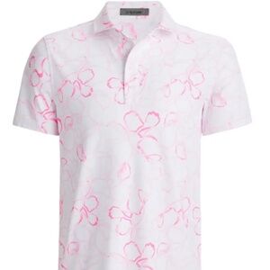 G/FORE Men's Medium BLUSH Watercolour Floral Tech Pique Golf Polo MSRP $120