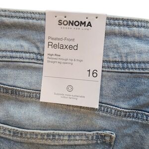 Sonoma Relaxed Pleated Front Jeans 16 NWT Light Wash High Rise Straight Leg