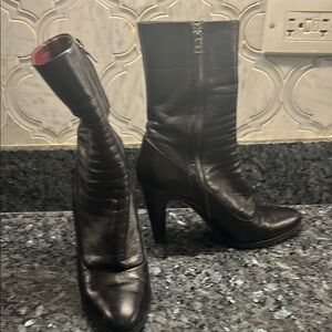 Prada Black Leather Heeled 3” Boots Women’s size 36.5 (6.5)