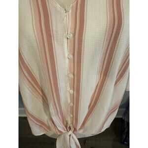 🩵🩵Lush Cream/Mauve Striped Blouse, tie front with buttons- SZ L🩵🩵