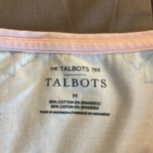 This relaxed blouse from Talbots features a striking graphic design on a soft pink background, offering a perfect blend of style and comfort. The 3/4 sleeves and scoop neckline add a touch of elegance, making it a versatile addition to any wardrobe. Size M.