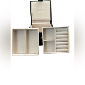 Mejuri Small Jewelry Box Organizer in Black And Cream Anti Tarnish Microsuede