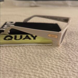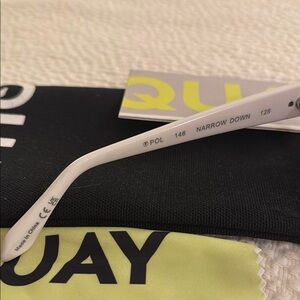 Stylish white cat-eye sunglasses by Quay Australia. Bold and trendy design.