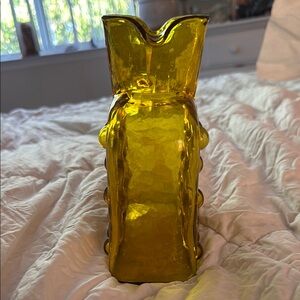 Vintage Blenko Amber Hobnail Bubble Glass Double Spout Water Pitcher