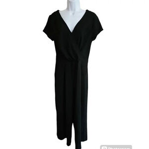 LOFT Outlet Black Short Sleeve Wide Leg Jumpsuit Size 6 Classic Career Preppy