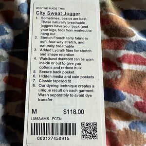 EiC- These lululemon athletica city sweat joggers in the rare earth stone (ECTN) tie dye offer a stylish blend of tones and are crafted for comfort and versatility. The soft stretch terry fabric and tapered leg design make them perfect for both lounging and casual outings. Enjoy the modern fit and feel of these essential sweatpants.
