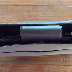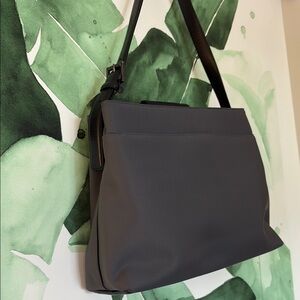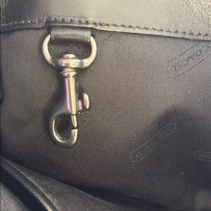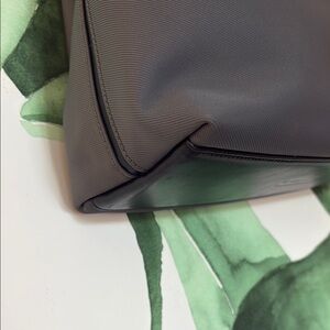 Coach Gray Nylon and Black Leather Bag. Multiple pockets inside for easy storage. Some signs of wear on outside and inside- please see pictures for details, but overall in great pre-owned condition.