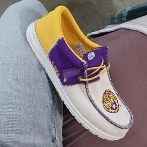Dynamic Nike sneakers with a bold orange and white design. Features a striking black swoosh and blue accents.