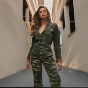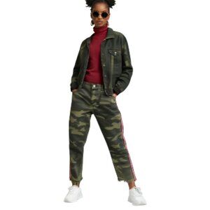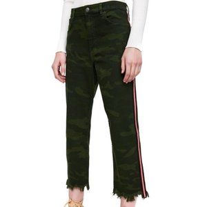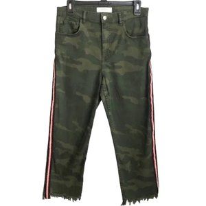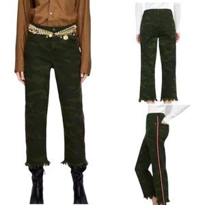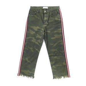 Zara Woman Camo Raw Fray Hem Crystal Embellished Crop Jean, Size 6
