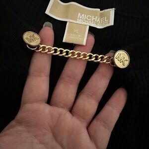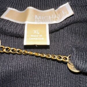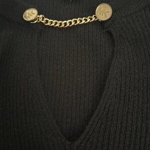 Michale Kors black sweaters with goldtone chain detail and chest cutout. One size L and one size XL Very pretty sweaters. Run on the slightly smaller side but has a lot of stretch!