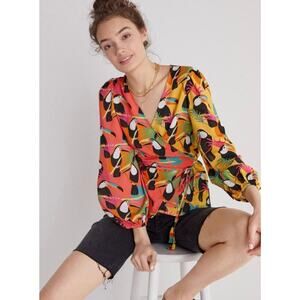 NWT Madewell High-Rise Crossover Bikini Bottom in Abstract Flora Sepia Size M
