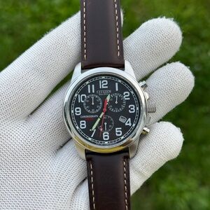 Citizen eco drive Chronograph with Black Dial and Brown Strap