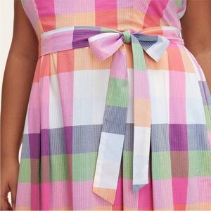Kate Spade x Target collaboration dress. Positively stunning!!! I unfortunately ordered the wrong size, Iโm just trying to make back what I paid so I can get the correct size! Vibrant plaid midi dress. Features a belt to tie at the waist. Perfect for casual outings.