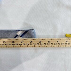 The Van Heusen Tie in Blue and Grey Striped "Flex" Silk is a designer accessory for men at a wedding or formal event. Made of luxurious silk, this skinny tie features a stylish striped pattern in shades of blue and grey. The abstract and preppy design makes it a versatile choice for adding a touch of sophistication to any formal outfit. Made by a reputable brand like Van Heusen, this tie is sure to elevate the style of any man looking to make a sharp impression.
