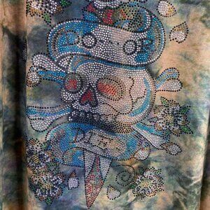 Daniel Benjamin Top Women's Multicolor Sz XL Bling Skull Watercolor Do or Die