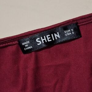 Shein red waist tie, high-low, long sleeve silk dress w/ button cuffs. Sz S