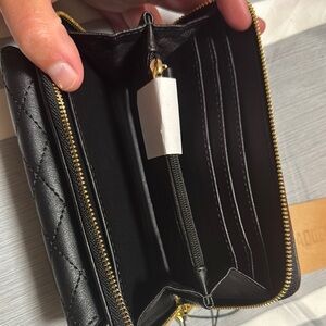 Steve Madden Black Quilted Wallet with Gold Logo