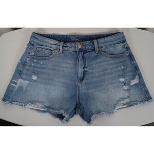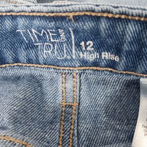 Time & Tru Size 12 Women's High Rise Distressed Denim Jean Shorts Stretch