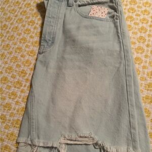 Step into effortless style with the Free People blue asymmetrical A-line skirt, perfect for casual and resort wear. This knee-length skirt features a unique asymmetrical design that adds a modern twist to a classic silhouette. Ideal for relaxed outings, its vibrant blue hue makes it a standout piece in any wardrobe.